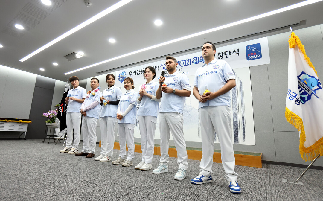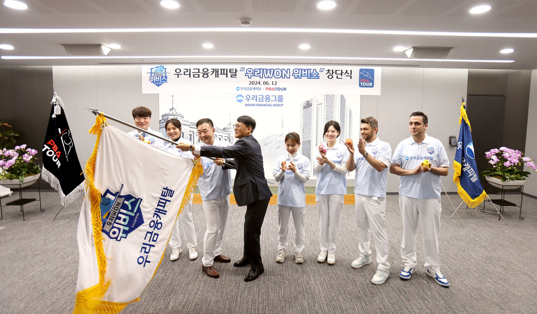 이날 창단식에는 우리금융그룹 임종룡 회장과 정연기 구단주, 장광익 부사장을 비롯해 우리WON위비스 선수단, 프로당구협회(PBA) 장상진 부총재, 김영진 전무이사 와우매니지먼트그룹 배상봉 본부장 등이 참석했다.