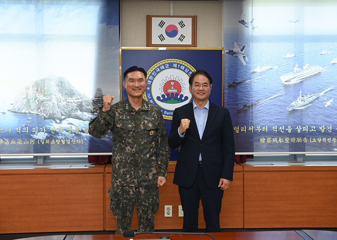 [사진설명] 강원도 동해안 해군 제1함대사령부 방문 기념촬영.