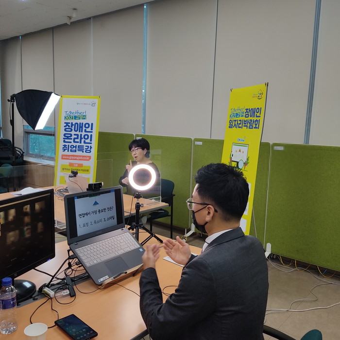 [사진설명] 수어통역사가 함께하는 장애인 면접특강 모습.