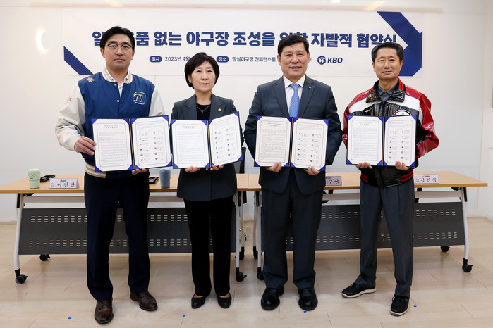 협약식은 NC-LG 경기가 펼쳐지는 잠실야구장에서 진행됐다. KBO 허구연 총재와 환경부 한화진 장관을 비롯해 NC 다이노스 이진만 대표이사, LG 트윈스 김인석 대표이사가 10개 구단을 대표해 참석했다. 이후 경기 시작에 앞서 각 기관의 원활한 협력을 기원하며 환경부 한화진 장관의 시구가 진행될 예정이다.