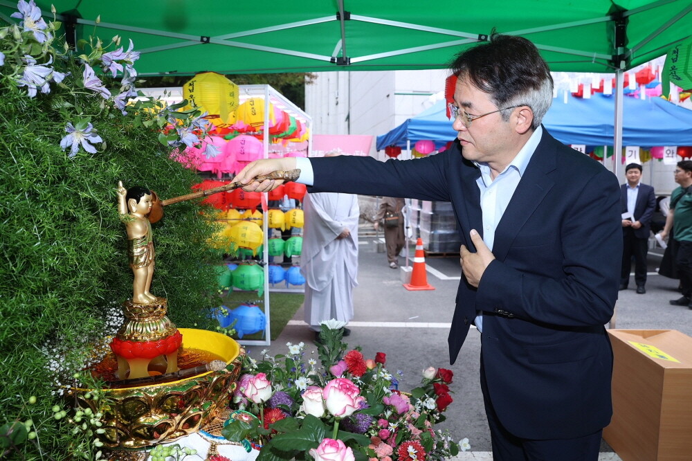 앞서 지난 13일에는 동국대학교 일산병원에서 개최한 봉축 법회에 참석해 동국대학교 이사장인 돈관 큰스님과 함께 관불의식을 행했다.