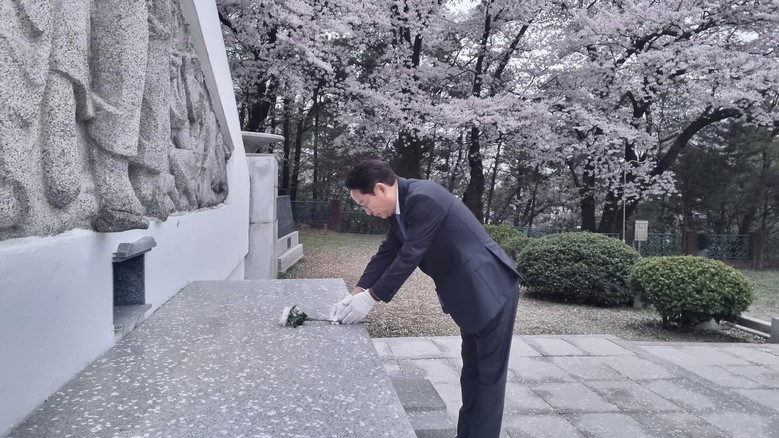 | ▲손명수 당선인 현충탑 참배모습 |