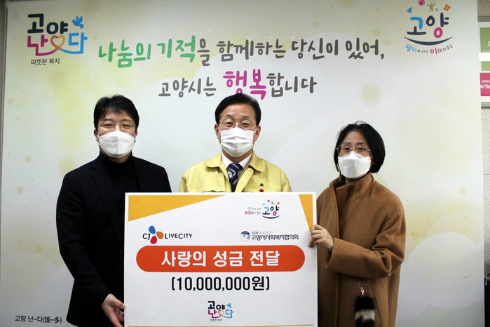 [부자동네타임즈 김인수기자] 고양시는 "지난 22일 CJ라이브시티에서 코로나19 극복 희망 나눔을 위해 사랑의 성금 1천만 원을 기부했다."고 밝혔다.