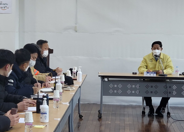 이재준 고양시장을 비롯한 관계자는 31일 오후 장항2동 행정복지센터에서 일산동구 상가건물 붕괴위험과 관련한 긴급회의를 갖고 대책을 마련했다.