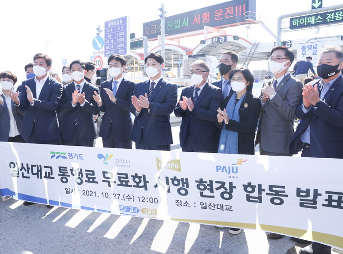 지난 1월 고양시가 일산대교 무료화 필요성을 적극 제기하면서 논의가 시작했고 2월 고양·김포·파주시가 뜻을 모아 ‘일산대교 무료화 촉구 공동성명서’를 발표했다. 이어 경기도가 무료화 방안을 강구하겠다는 뜻을 밝히면서 무료화에 급물살을 타게 됐고 27일 경기도 공익처분으로 실현됐다.