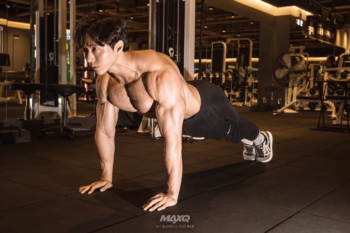 [사진설명] 푸쉬업 자세를 선보이는 김태양 선수 멕스큐 사진 제공.