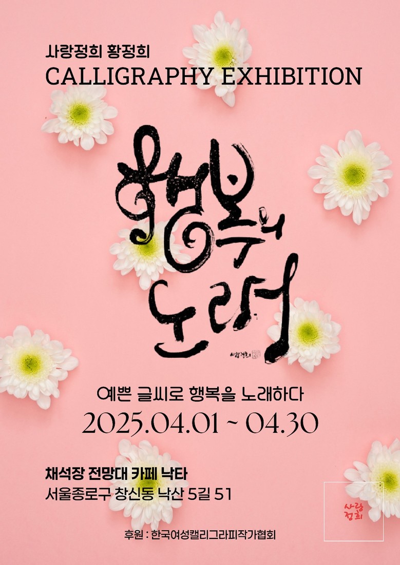 "행복의 노래" 라는 주제로 예쁜 글씨로 행복을 노래하다로 2025년 4월 1일부터 4월 30일까지 전시가 되고 있다.