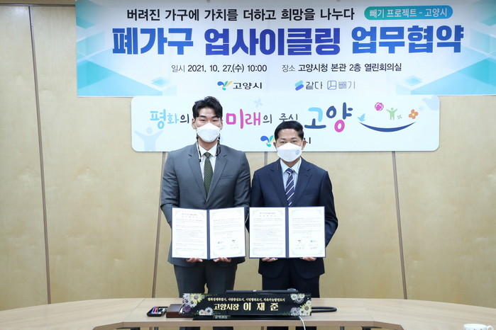 [부자동네타임즈 김인수기자] 고양시와 주식회사 같다(대표이사 고재성)가 버려진 가구를 업사이클링해 새 가구로 탄생시킨 후 이를 필요로 하는 저소득 가구 또는 사회복지시설에 기부하는 업무 협약을 체결했다.