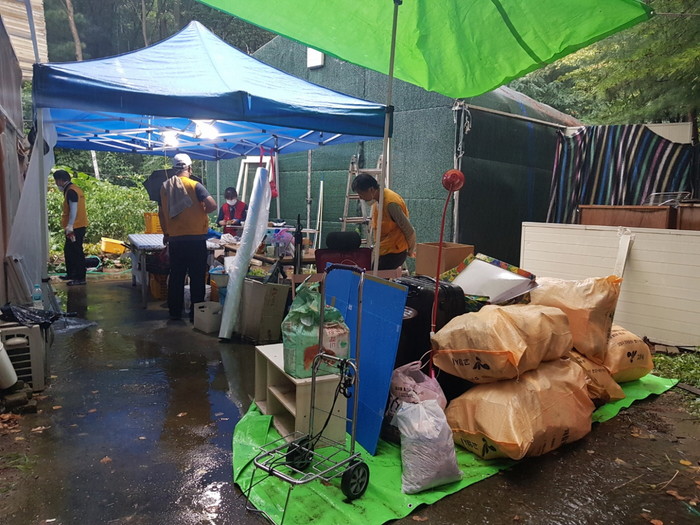 올해 들어 2번째로 주거환경 취약계층에게 집수리 등 주거환경 개선을 위해 애쓰고 있는 라페엘천사단은 장대비가 쏟아지는 궂은 날씨임에도 불구하고, 봉사단원 10여명이 참여하여 집안에 있는 쓰레기를 일체 수거한 후 도배·장판·청소·싱크대·화장실 개보수까지 대대적으로 수리하였다.