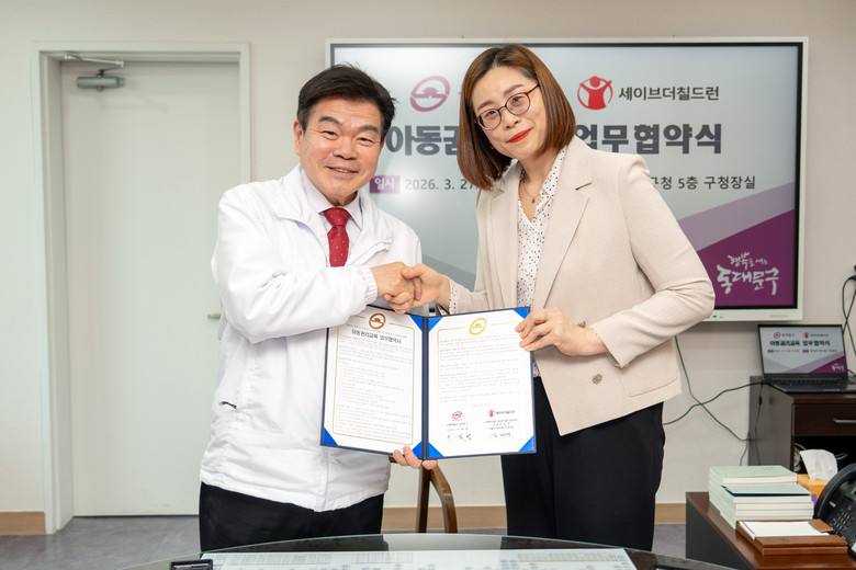[부자동네타임즈=이병도 기자] 서울 동대문구(구청장 이필형)는 27일 구청장실에서 사회복지법인 세이브더칠드런코리아와 「아동권리교육 업무협약」을 체결하고, 모든 아동의 권리가 존중받는 아동친화도시 동대문구 조성을 위해 본격적인 협력에 나선다고 밝혔다.
