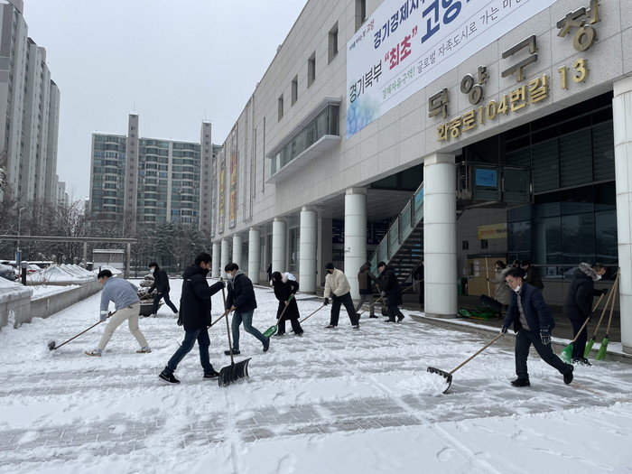 [부자동네타임즈 김인수기자] 고양특례시 덕양구는 지난 15일, 대설주의보 발효에 따라 구청을 오가는 시민들을 위해 청사 주변의 눈 치우기를 실시했다.