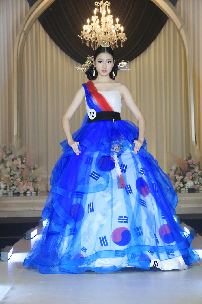 [사진설명] 2023 제1회 대한민국 무궁화퀸모델선발대회, 아젤리아 드레스 패션쇼에 당당한 위킹을 선보이는 홍주하 모델.