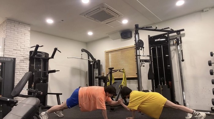 [사진 설명] 트레이너 김태양과 모델 이다운이 동작을 선보이고 있다.