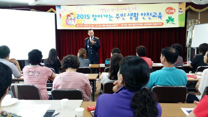 봉선1동 주민자치위원회와 방림지구대가 합동으로 개최한 ‘찾아가는 주민생활 안전교육’은 주민들을 대상으로 10월29일 까지 매주 목요일 오후4시에 10회에 걸쳐 실시되며 안전업무를 담당하는 10여개 기관이 참여해 안전교육을 실시할 예정이다.