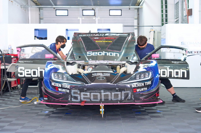 [사진설명] 서한 GP의 미케닉들이 삼성화재 6000에 출전하는 팀 차량을 정비하고 있다.