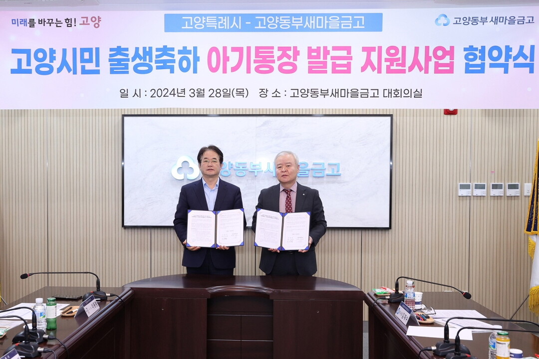 [부자동네타임즈 = 김인수 기자] 고양특례시가 지난 28일 고양동부새마을금고(이사장 김재수)와 ‘고양시민 출생축하 아기통장 발급 지원 사업’추진을 위한 업무 협약을 체결했다.