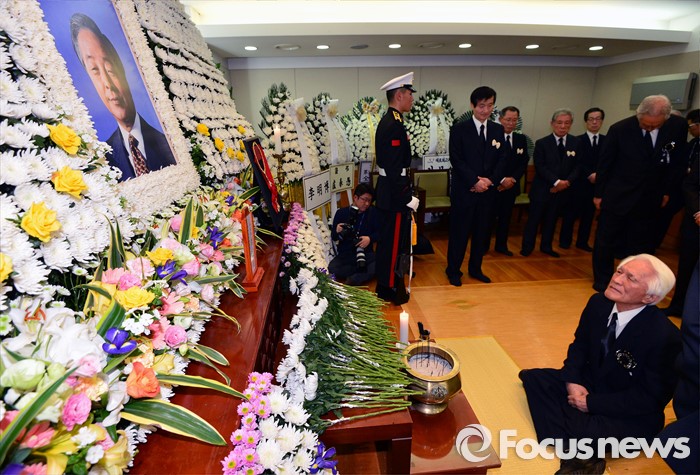(서울=포커스뉴스) 최형우 전 내무장관이 24일 서울 종로구 서울대병원 장례식장에 마련된 故 김영삼 전 대통령의 빈소를 찾아 조문하고 있다.