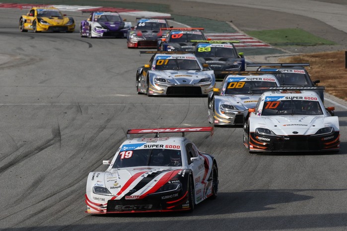 [사진설명] 2020 CJ대한통운 슈퍼레이스 챔피언십 6라운드 슈퍼 6000 결승에서 엑스타 레이싱의 노동기(19번)와 아트라스BX 모터스포츠의 조항우(10번), 최명길(08번)이 열을 지어 달리고 있다.