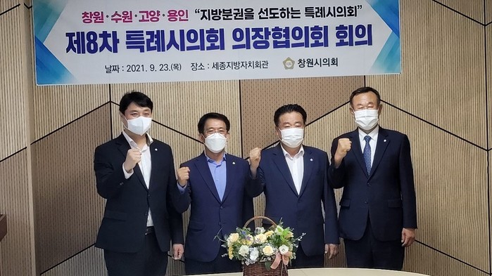 이날 회의에는 이길용 고양시의회 의장, 조석환 수원시의회 의장, 김기준 용인시의회 의장, 이치우 창원시의회 의장과 특례시의장협의회 실무 TF가 참석하였다.