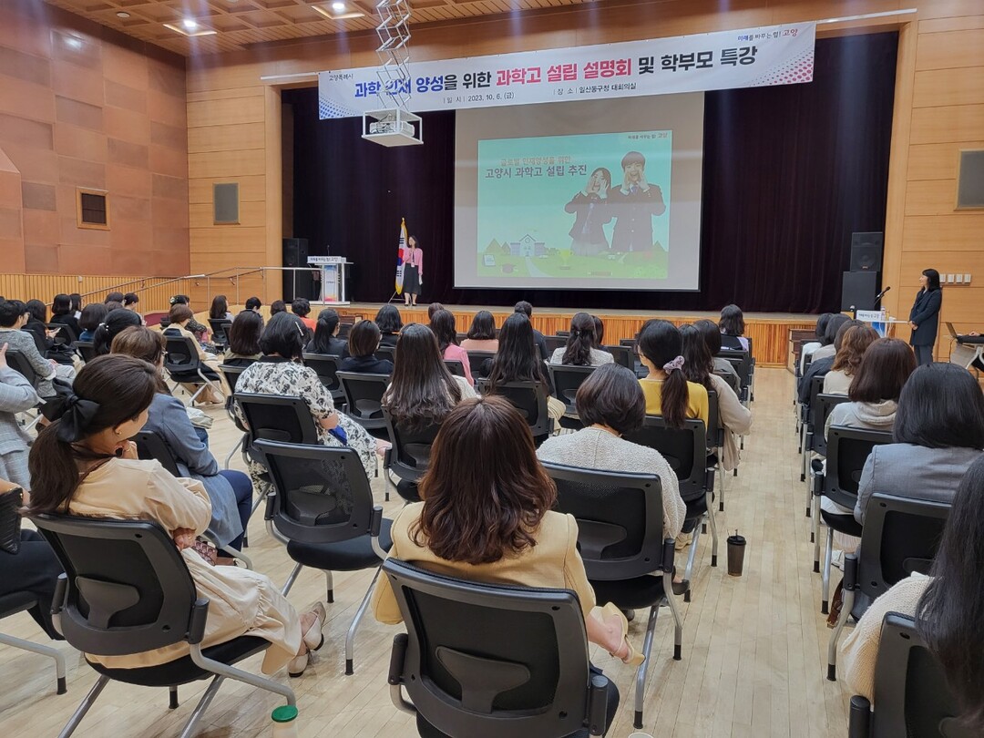 이날 설명회에서는 고양시 과학고 설립 추진 사항 공유와 과학고 설립 필요성에 대한 안내 그리고 특목고 진학 학부모들의 사례 발표가 진행됐다. 이어 장금희 동국대학교 심리학 박사의 ‘과학 인재 양성을 위한 학부모 특강’이 진행됐다.