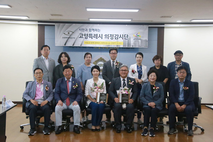 [부자동네타임즈 김인수기자] 고양특례시 의정감시단은 지난 3일 고양특례시의회 4층 영상회의실에서 감시단이 제정한 우수의정 대상 상패와 감사장 전달식을 진행했다.
