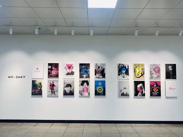 ‘Anti – Covid 19, 디자인(2학년 16명)’은 명화 속 장면들을 사회적 거리두기, 마스크를 쓴 여인 등으로 표현했으며, ‘희망을 띄우다, 서양화(2학년 25명)’은 애니메이션 라푼젤 속 한 장면을 통해 희망의 등불을 밝힌다.