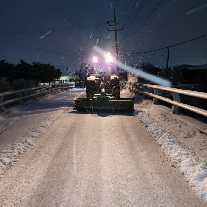 총 15명으로 구성된 트랙터 제설봉사단은 강설 상황 발생 시 지역주민의 안전을 위해 곧바로 직원의 힘이 미치지 못하는 농로는 물론 마을 안쪽 이면도로까지 제설에 온 힘을 다하고 있다.