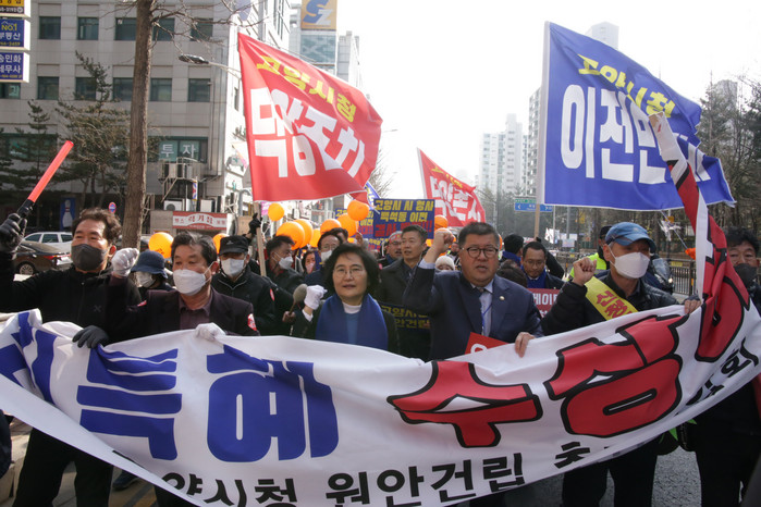 격분한 약 2만명의 시민들과 함께 고양시청 문예회관서 열린 제104주년 삼일절 기념행사 참가를 마친 민주당 시·도의원들이 합류 하면서 더욱 큰 목소리를 전하고 화정역 광장 집회 후에는 고양어울림누리까지 약 1.8km 가두행진을 펼쳤다.