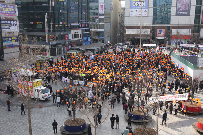 [사진설명] 고양시 시민 화정역 광장에서 고양어울림누리까지 약1.8km 가두행진을 약 2만여명이 진행하고 있다.