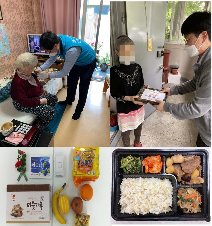 이날 전달된 선물 꾸러미와 특별 도시락은 고양시 무궁화소상공인자원봉사협회, 농협대학교, 뚜레반, 그랜드백화점 주엽점, 일산광림교회, 다함봉사단, 다온식자재마트 및 개인후원자 등이 준비한 과일, 곡물가루, 카네이션, 생필품, 후원금 등으로 마련됐다.