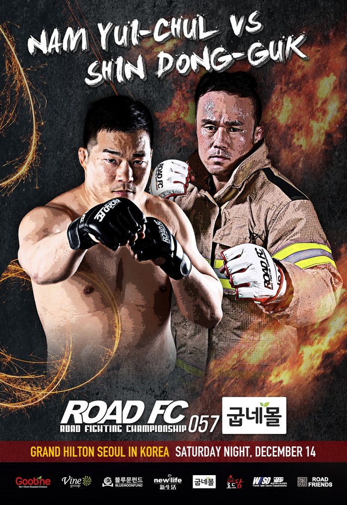 [부자동네타임즈 김인수기자] ROAD FC (로드FC)는 14일 서울시 홍은동 그랜드 힐튼 서울에서 굽네몰 ROAD FC 057을 개최한다. 대회의 메인 이벤트로 남의철과 신동국이 대결해 승자를 가린다.