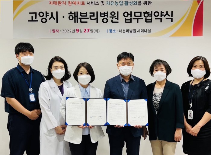 [부자동네타임즈 김인수기자] 고양특례시(시장 이동환)와 해븐리병원(원장 이은아)이 9월 27일(화) 치매환자 원예치료 서비스 및 치유농업 활성화를 위한 업무협약을 체결했다.