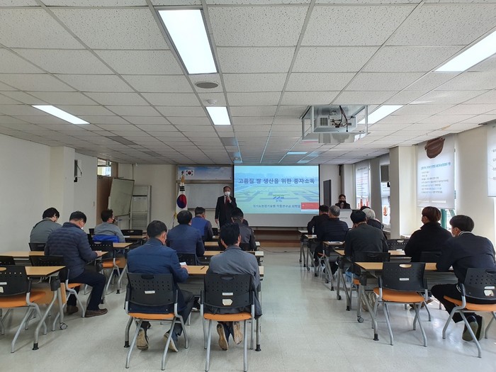 [부자동네타임즈 김인수기자] 고양시는 밥맛이 좋은 ‘가와지 1호’를 지난해 고양시 특화작목으로 선정하여 주력 품종으로 육성하기 위해 재배를 장려하고 있다. 이에 시는 품질 좋은 고양쌀 생산을 위해 종자소독부터 실천해야할 핵심기술에 대해 지난 14일 못자리설치 농가 25명이 참여한 가운데 교육을 실시했다.