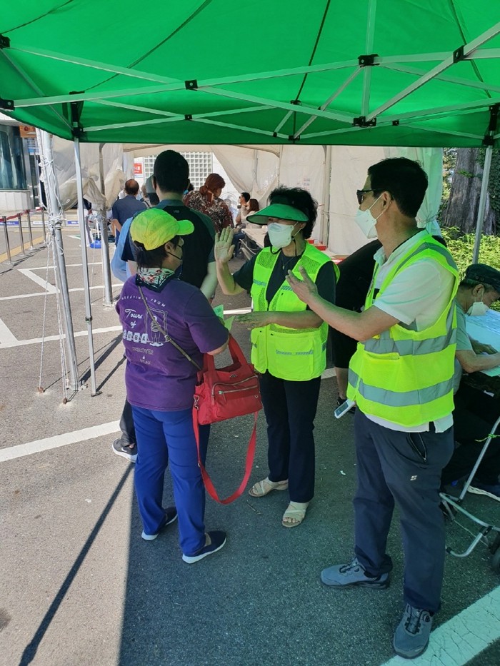 이들은 코로나 상생 국민지원금 접수 안내, 주차 및 동선 안내, 방역지침 및 거리두기 지키기, 거동불편 어르신 이동지원 등 코로나 상생 국민지원금 신청을 위해 방문하는 주민들이 불편을 겪지 않도록 돕고 있다.