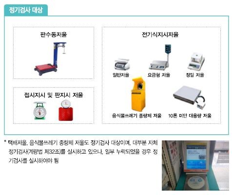 정기검사를 받지 않은 저울을 사용할 경우 「계량에 관한 법률⌟에 따라 100만원 이하의 과태료가 부과되므로 상거래 또는 증명에 사용되는 모든 검사대상 저울은 빠짐없이 정기검사를 받아야 한다.