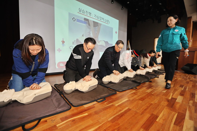 교육 내용은 민방위 기본 소양교육과 함께 방독면 착용, 심폐소생술 등 실제 위기 상황 대응을 위한 실기실습으로 구성했다.
