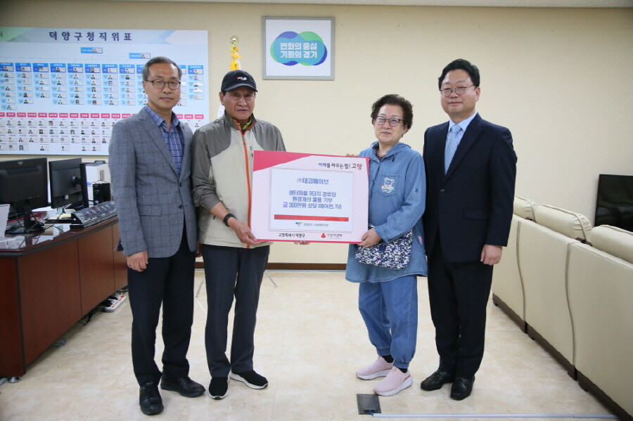 [부자동네타임즈 = 김인수 기자] 고양특례시 덕양구는 지난 7일 ㈜데코페이브에서 행신동 샘터3단지 경로당에 300만 원 상당의 물품(에어컨, TV)을 기부했다고 밝혔다.