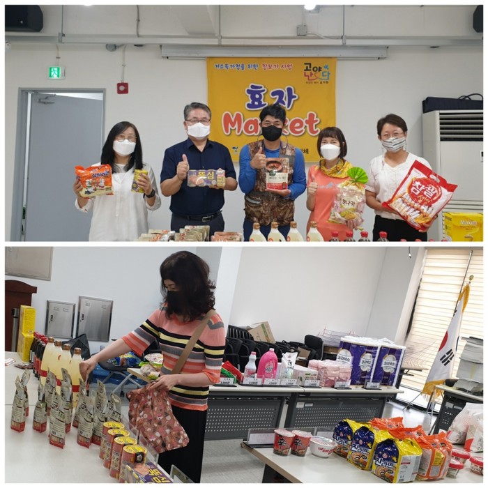 효자마켓은 효자동 행정복지센터 내에 간이마켓을 설치하여 대상자들이 필요한 생필품을 직접 골라가는 사업이다.