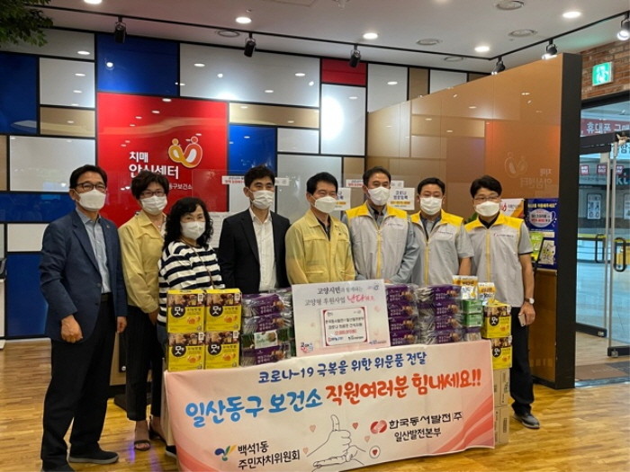 [부자동네타임즈 김인수기자] 고양시 일산동구 백석1동 주민자치위원회(위원장 김영숙)와 한국동서발전(주)일산발전본부가 지난 13일 고양시 일산동구 보건소를 방문해 간식을 전달했다.