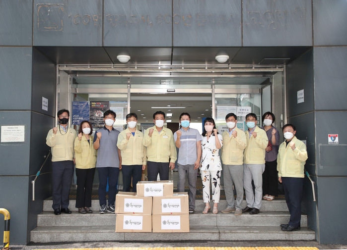 [부자동네타임즈 김인수기자] 고양시의회(의장 이길용)가 7월 28일 덕양구보건소를 방문하여 고양시학원연합회(회장 이재범)가 준비한 격려물품을 전달하였다.