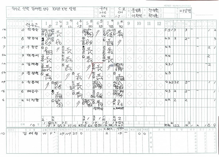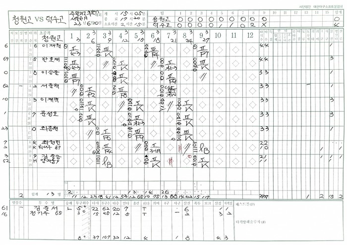 [사진설명] 청원고-덕수고 기록지.