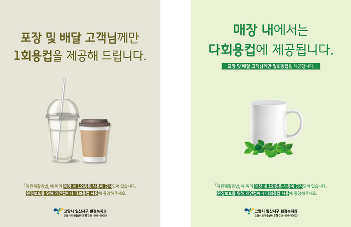 [부자동네타임즈 김인수기자] 고양시 일산서구(구청장 이재혁)는 이번 달부터 일반음식점 및 카페 등 식품접객업소 매장 내에서 1회용품 사용을 규제하는 법률개정 안내와 1회용품 사용률 감소를 위해 현장 지도·점검을 하고 있다.
