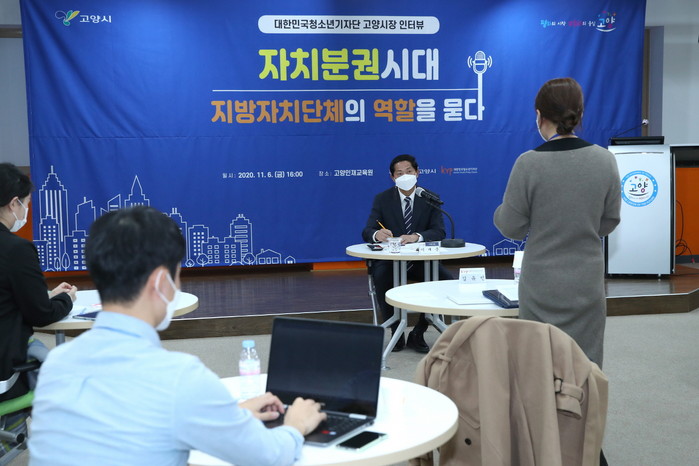 [부자동네타임즈 김인수기자] 고양시(시장 이재준)는 "지난 6일(금) 고양인재교육원에서 대한민국청소년기자단이 이재준 고양시장과 시정 전반에 대한 인터뷰를 진행했다."고 9일 밝혔다.