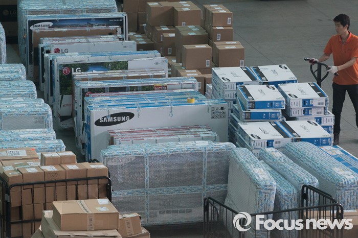 | △ 블랙프라이데이 물량 정리하는 직원'비지땀' |