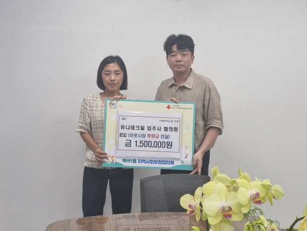 백석1동 장수지 맞춤형복지팀장은 “나눔을 실천하는 유니테크빌 입주사 협의회에게 감사드린다. 민관이 협력해 복지사각지대를 발굴하고 각종 지원 연계를 통해 백석1동의 취약계층에 대한 복지 서비스를 확대하는데 노력 하겠다”라고 전했다.