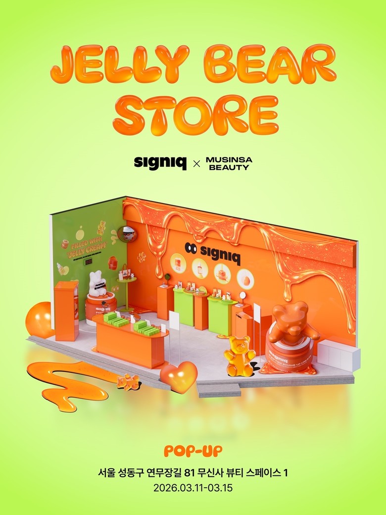 시그닉은 오는 11일부터 15일까지 성수동에 위치한 무신사 뷰티스페이스 1에서 ‘젤리 베어 스토어’(JELLY BEAR STORE) 오프라인 팝업을 운영하며 국내 소비자를 직접 만나는 시간을 갖는다.