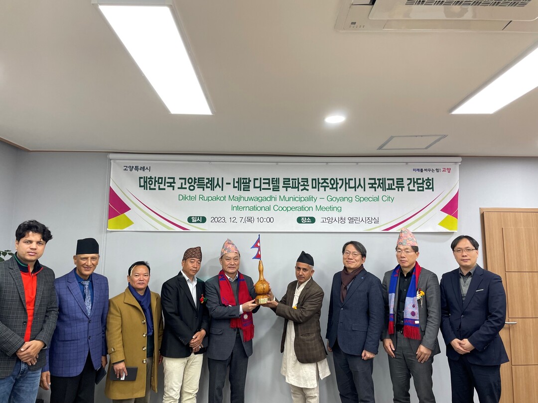 [부자동네타임즈 = 김인수 기자] 지난 7일 네팔 디크텔 루파콧 마주와가디시(Diktel Rupakot Majhuwagadhi Municipality) 티르타 라지 바타라이(Tirtha Raj Bhattari) 시장을 비롯한 대표단이 고양시청을 방문했다고 전했다.