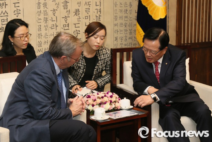 정의화 국회의장이 29일 오후 4시 국회 의장접견실에서 구글 지주회사 '알파벳'의 에릭 슈미트 회장을 만나 이같이 말했다.