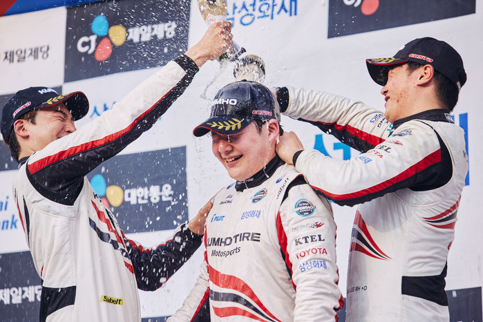 6000 클래스에서 가장 어린 세 선수를 이끌고 올 시즌을 달려왔던 엑스타레이싱 김진표 감독은 선수들과 함께 진행한 우승 인터뷰에서 “감히 원, 투, 쓰리 피니시는 한 번도 욕심내본 적도 없었는데, 운이 많이 따라준 것 같다. 그러나 운이 따르기까지 금호타이어 연구원을 비롯해 팀원들 모두가 정말로 고생했다”며 감사함을 전했다.