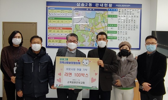 [부자동네타임즈 김인수기자] 고양특례시 삼송2동 행정복지센터는 설 명절을 앞둔 지난 19일, 덕양구 소재 순복음밝은빛교회(담임목사 양요한)로부터 라면(20개입) 100박스를 기탁 받았다고 밝혔다.